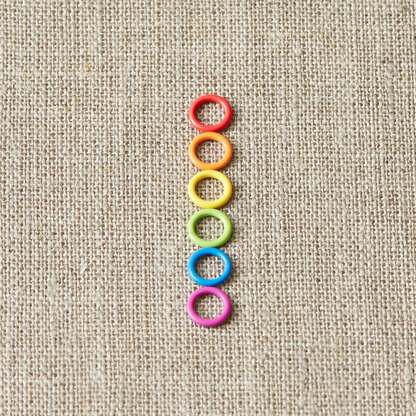 These Small Colored Stitch Markers from Cocoknits are the mini version of the popular ring stitch markers. They're brightly colored and easily seen when marking rounds, increases, decreases, and stitch patterns. These stitch markers accommodate up to a US 7 needle.