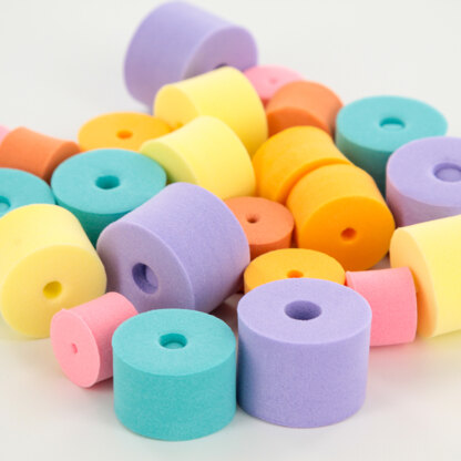 Cocoknits Stitch Stoppers are colorful EVA foam plugs that slide all the way onto needles (not just on the tip) to secure your stitches. They also slip onto interchangeable needle cords to keep your stitches from sliding off while you try on your top-down garment or use your needles elsewhere.