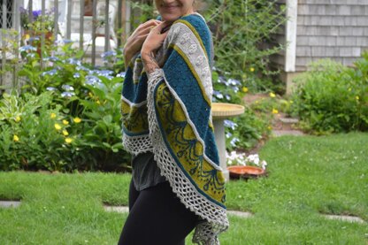 The Collage Crescent is an artful collage of stitches, techniques and different mediums. The crescent-shaped shawl is composed of a knit body featuring stockinette, purl bump rows, eyelets, and embossed stitches. The edging is worked in a simple crochet pattern. After the shawl is complete, the embroidery chain stitch and French knots are worked on the stockinette sections creating a special embellished design. Knit up in The Fibre Company’s Cumbria Fingering yarn, this shawl is warm, fuzzy, and has a lovely romantic drape!