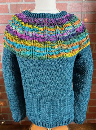 This colorful popcorn pullover is crocheted entirely in the round using sock/fingering weight yarns. The popcorn yoke is made using a self-striping yarn. No sewing is needed! This written pattern includes a complete video tutorial to guide you in all you need to know to complete this design.