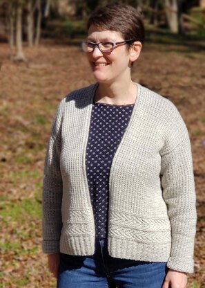 ike many knitters, I first learned to knit as a child, but it didn’t really stick. When I picked up knitting again as an adult, it was mainly with the goal of knitting sweaters. I was inspired by one sweater in particular: a ready-to-wear sweater I’d seen in a magazine advertisement, a cozy textured cardigan in that certain shade of oatmeal gray. This design is a nod to that sweater - a relaxed fit, go-with-everything open cardigan featuring garter rib and knit-and-purl texture patterns and a slight A-line shape.