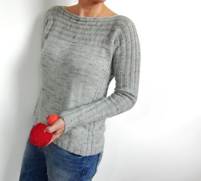 The square shape of a box and the ribbing pattern of a corrugated board = a corrugated box. A wide boat neck and fitted sleeves balance out the wide-shaped bottom so that the finished garment has both elegance and drape. With a wide and loose fit, this sweater is easy to knit and flattering to wear. A seamless knit, using easy techniques – perfect for a relaxed TV-knit. The pattern includes an extra cowl for warmth and comfort on a cold day.