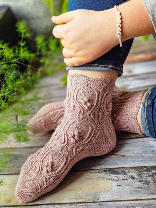 Welcome to the Coryn Socks knitting pattern, a design that effortlessly combines elegance and creativity! These charming socks are knit from the top down, beginning with a delicate scalloped edge that sets the tone for the intricate beauty to follow. The body of the sock features a stunning combination of bobbles and twisted stitches, creating a rich texture that’s as enjoyable to knit as it is to wear.