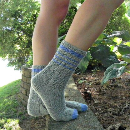 Want to knit some footwear that’s quick and simple but more than just another “vanilla” sock? Then Coureur is for you. Retro and unisex in style and reminiscent of the athletic footwear of the ‘70’s, these socks with their cool stripes and dead-simple variation on a rib, make a statement.