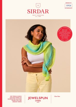 Crescent Glow Crochet Shawl in Sirdar Jewelspun Ombre - 10926 PDF is a Intermediate Crochet pattern by Sirdar, available as a Downloadable PDF and includes instructions in English. Super fun to make, this pattern could be your next masterpiece!