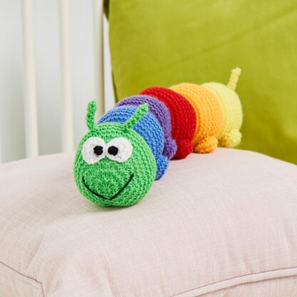 Cuthbert is a bright rainbow caterpillar who will brighten up any room. Knitted in garter stitch and with simple increases and decreases, this is an ideal pattern for beginner knitters who are new to making toys. Designed by Amanda Berry @fluffandfuzz, the caterpillar is knitted in acrylic DK yarns on single pointed needles (not in the round). For beginners and above, other techniques used include casting on and off, knit, work a kfb increase and k2tog decrease, and seaming to finish.