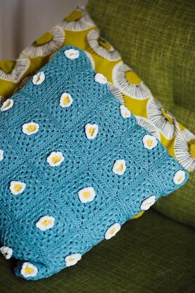 This simple cushion combines the much loved granny square with pretty daisy motifs.