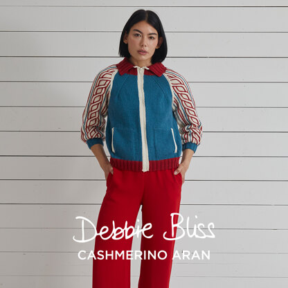 Download the PDF pattern for Anastasia Baseball Jacket - Knitting Pattern for Women in Debbie Bliss Cashmerino Aran & start knitting today!