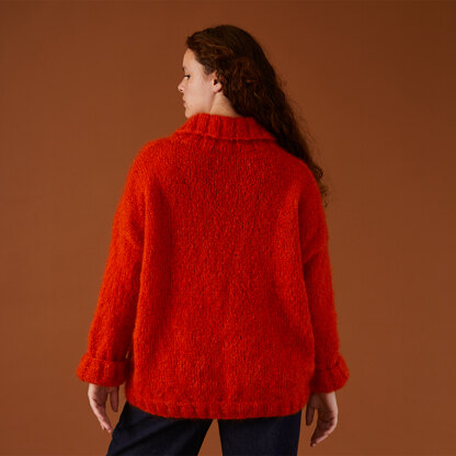 Mohair is super warm yarn to wear, despite its light and fluffy look, and this fabulous longline sweater is a great choice if you feel the cold! A simple knit with a wide ribbed collar, and folded cuffs, Helen is a sweater that is good for knitters new to mohair knitting! Nell is a soft, cozy yarn with a deep halo - and there are 11 gorgeous shades to choose from in this chunky weight mohair blend.