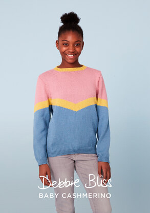 Struggling to find knits for tweens? Debbie Bliss has created a new collection of five fabulous patterns for the 5-6 to 11-12 age group, and Kitty is a gorgeously modern knit for kids who want to be a little bit more grown up! A deep chevron in pastels knit in Debbie Bliss Baby Cashmerino is soft enough to wear next to the skin and a grab-and-go sweater for jeans, shorts and skirts! Change up the colors to match tweeny faves!