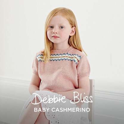 Add a touch of colorwork charm to your next project with the Maisie Fairisle Sweater by Debbie Bliss. This sweet short-sleeve tee features a beautifully delicate Fair Isle band across the yoke, offering just the right amount of detail to elevate your handmade piece.