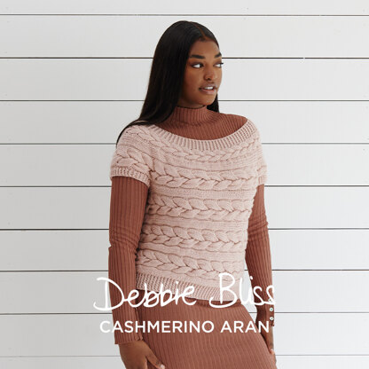 Debbie Bliss Sideways Cable Top is a stunning women’s pullover knit flat in one piece from side to side using Cashmerino Aran. The center back is then seamed. Cashmerino Aran by Debbie Bliss is a fantastic worsted weight favorite. This yarn is great for baby and children’s items as it has a tight twist for wear and is machine washable. The cable pattern is in written form only.