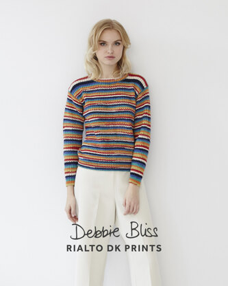 Download the PDF pattern for "Striped Ribbed Sweater" - Sweater Knitting Pattern For Women in Debbie Bliss Rialto DK Prints & start knitting today!