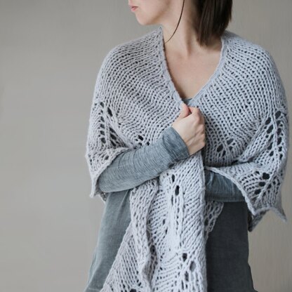 This top-down triangular shawl has a stockinette body as lofty as fresh snow and a lace border as delicate as frost edging a windowpane.