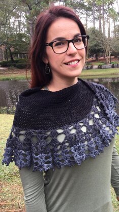 A flirty little shawlette that is quick to work up in three gradient shades of fingering weight yarn. Worked from the top down, you can use the colors going from dark to light as shown in the model, or light to dark for a different look.