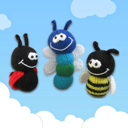Some happy Dinky Bugs! These little bugs are fun quick to knit toys, and include a dinky bee, ladybird and dragonfly. Each is worked predominantly in stockinette, with knitted bobbles for eyes, and slipped stitch edges on the garter stitch wings. Designed by Amanda Berry @fluffandfuzz, the toys are knitted in acrylic DK yarns on single pointed needles (not in the round). The antennae and bee sting are i-cord tubes worked on two DPNs. For confident beginners and above, other techniques used include casting on and off, knits, purls, increases and decreases, knitting stripes, and seaming to finish.