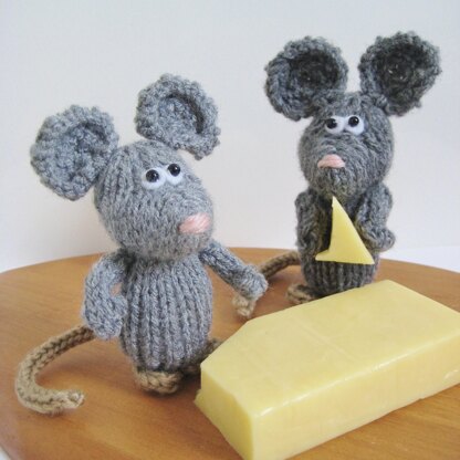 These cheeky little Dinky Mice are having some cheese for lunch. You could make your mice as toys, add to key chains, or even hang from your Christmas tree. You only require a small amount of yarn to knit each mouse, so this is a super pattern for using up ends of skeins/balls to avoid waste. Most pieces are worked flat (back and forth) on a pair of straight single pointed knitting needles, not in the round. The arms, feet and tail are i-cord worked on two DPNs. Designed by Amanda Berry @fluffandfuzz, these mice are knitted in acrylic DK yarns. For confident beginners and above, other techniques used include casting on and off, knits, purls, increases and decreases, and seaming to finish.