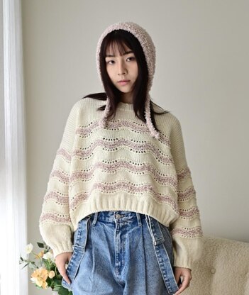 The Drift Sweater is knitted by starting at the back from the top down to the base of the armholes. Then, both fronts are picked up and knitted separately, working from the top down to the edge of the front neck. After joining both pieces, the front is worked to the armhole, and then the front and back are joined and knitted in the round down to the hem. Pick up and knit for the sleeves and neckband.