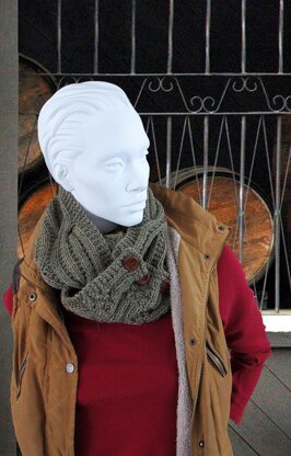 Quick knitting and fun to wear, make one of the smaller cowls for a short and cozy neck warmer. Make both cowls and button them together for a long cowl to wrap around your neck for extra warmth.