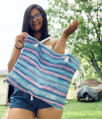 This crochet beach bag pattern is beginner friendly. It's a super easy to make and the beautiful yarn makes a simple project look stunning!
