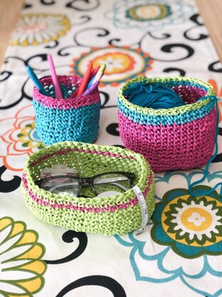 Basic crochet skills are all it takes to make these Easy Little Crochet Baskets. Using just single crochet and small amounts of yarn, you'll be soon be turning these out by the dozen! They'll hold your crochet hooks, pencils, paperclips, glasses, keys, or tiny treasures.
