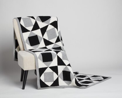 Monochrome blocks in alternating colors create a visual illusion of two different designs. Inspired by the graphic designs of Escher, this blanket can be worked by a confident beginner.
