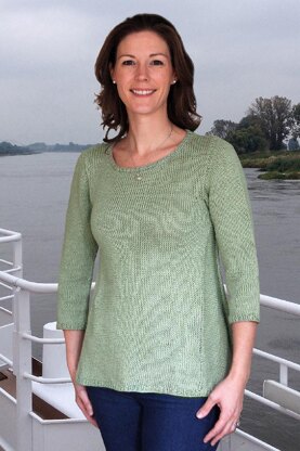The tapered side gussets add swing to this comfortable spring sweater which is worked in a cotton/linen blend.