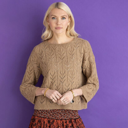 The Elsebeth Lavold Beech Leaf Pullover is a stunning lace sweater that adds graceful style to a wide range of outfits. Layer this pullover on top of a tank in the spring and a long sleeve tee in the fall for a beautiful look that's elegant and adds just enough warmth too. A drop-shoulder silhouette gives this sweater a laid-back feel that's comfortable to wear, but also looks put together paired with everything from workwear to weekend casual outfits. The Beech Leaf Pullover is knit flat in pieces from the bottom up and seamed, with a crew neckline and three-quarter length sleeves. Elsebeth Lavold Silky Wool is a longtime crafter favorite with its blend of wool, silk, and nylon that's available in a wide range of gorgeous heathered colors. With a slight tweedy look, Silky Wool adds a subtle texture to finished projects and its versatile fiber blend is comfortable to wear through much of the year. Lace pattern is both charted and written out.