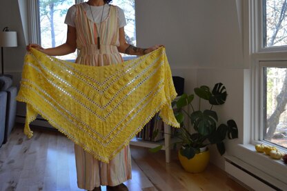 Embossy is a triangular shawl knit from the top down. Each section contains a different style of embossed (raised surface) stitches. From puling up stitches, to wrapping them, crossing stitches with cables, to rapid increases and decreases, we use a variety of different techniques to create this fun shawl and gain new skills for your knitting technique toolbox! Each section is broken up by contrasting-color eyelets and the shawl ends in a fancy picot bind off. Knit up in Sincere Sheep’s Eureka Worsted yarn this shawl is a quick, addicting knit that is sure to keep your interest all the way through!