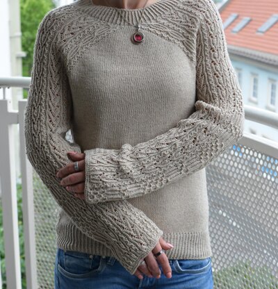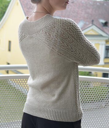 The sweater is worked seamlessly from the top down allowing you to adjust the length of the body and the sleeves to your desire.