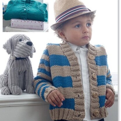 For a fast and easy cardigan pattern with a classic silhouette, try the Laugh Cardigans from Euro Baby. Available in a plain or striped version, the sweater features set-in sleeves and v-neck shaping. Babe Softcotton Chunky is the perfect choice for children's garments because it is so incredibly easy to care for - just throw it in the washer and dryer, and send your little one out in style!