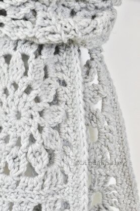 - The scarf shown here is shown in a lighter grey shade of Hayfield Chunky.