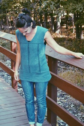 The Everyday Tunic is a simple tunic length top. It features eyelet rows and columns set on a stockinette background and a V neckline. It has an A Line shape for a flattering silhouette. An i-cord bind off is worked on the neckline and armholes for a smooth clean edge. Knit up in a light fingering or lace weight yarn it is light enough to wear in the summer while also great for layering in the cooler months. The everyday tunic is a versatile piece sure to become a wardrobe staple!