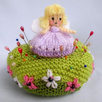 A very easy pattern to knit for beginners using double knitting yarn and 3.25mm and 2.75mm needles. The cute little fairy requires a 5cm pin as a base and once finished she will sit happily guarding the pins in her pin cushion garden which is made from two identical knitted squares. The PDF pattern is 4 pages long with plenty of pictures and tips to guide you. Rows are numbered. Quick and fun to make, the fairy pin and her pin cushion will make an excellent gift. NB. If you omit the pin the little fairy could be given to children to play with or why not turn her into a little fairy brooch.