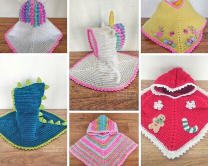 This Poncho crochet pattern is an easy repeat pattern and works up quickly, it can be worked in an endless choice of colours with or without a hood, including applique patterns to decorate your poncho for Easter and Christmas or make into a dinosaur or unicorn poncho. Written in English US terms with abbreviations for UK terms. Materials 1.5, 2, 2.5, 3 and 4 mm crochet hooks Needle Scissors 280-1200 metres of dk / weight 3 yarn (or could be made in weight 4 / aran and make a size smaller than you want)