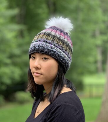 - A fur pom pom is a great topper, but a handmade yarn pom or tassel is fine too. Please add extra yardage if making your own topper.