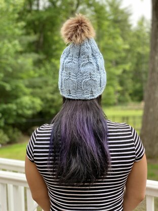 Knit with super bulky yarn on big needles and available in 3 sizes: Infant, Small Adult and Large Adult.