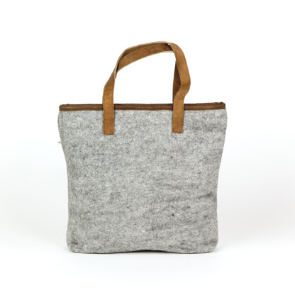 Fibres of Life Big Life Tote is a large and sturdy zippered tote bag with naturally tanned leather trim and handles. This hand-felted wool bag has a cotton fabric lining that features two sewn pockets on one side and a zippered pocket on the other. This bag is a Fair Trade item, and special attention is given to every step of the production process in order to maintain the highest quality of products as well as the quality of life of the artisans who produce them. Bags measure 18” tall, 17½” wide, and approximately 4” deep. Handles measure 10” from top of bag to top of handle.