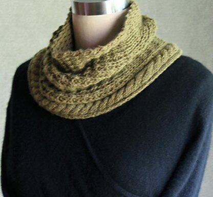 Top off your favorite fisherman's sweater ... or your favorite tee shirt ... with this cozy neck warmer. The slip-stitch waffle rib is reversible and dense, and the cable edging allows the cowl to hug the neckline beautifully.