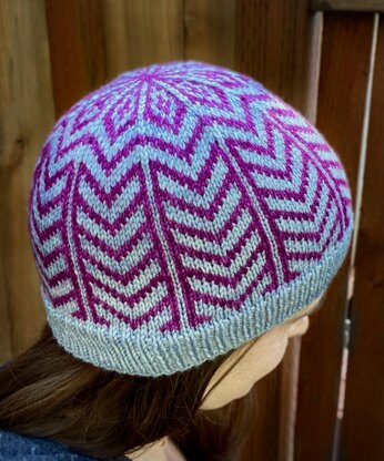 MATERIALS NEEDEDYarn: Malabrigo Yarn Arroyo (100% superwash merino; 335 yds/306 m per 100g skein); 1 skein in Polar Morn for main color (MC), 1 skein in Hollyhock for contrasting color (CC)