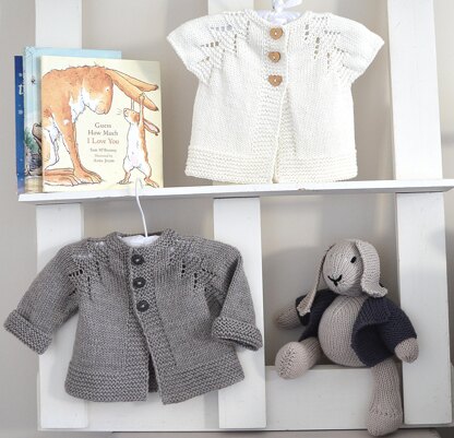 This cardigan comes with two variations, one for short sleeves, which would be perfect for summer, and the second version has long sleeves. Knit one for spring/summer and another for autumn/winter. Simple top down construction with a waterfall pattern cascading down the Fronts and Back raglan. Pattern comes with schematic and Chart. Please note: pattern does not include knitting instructions for the bunny rabbit.