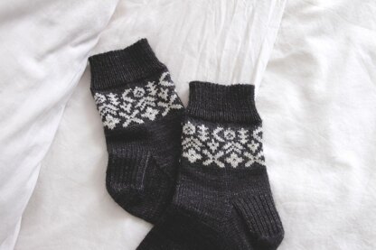 Pinecones, needles, acorns, samaras, chestnuts, and blossoms. The trees of our forests produce so many curious and delightful shapes, it gets our hearts all a-flutter! The Forest Fruit socks pay homage to nature’s inspiring natural objects, with flora-esque colourwork motifs.