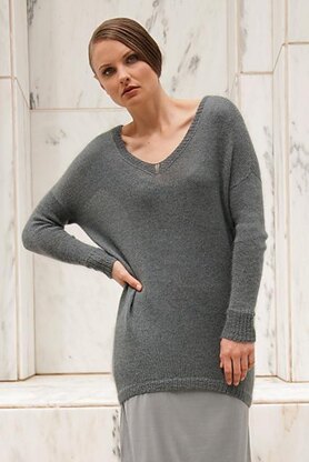Silk Cloud and Cima, one of our favorite pairings, come together in Veer. Deceptively simple, this v-neck, tunic length sweater is knit in the round, with a flattering dropped hemline. Simple increases define the shape, and fitted sleeves are juxtaposed against the loose, easy fit. Silk Cloud gives an incandescent glow to the fabric, while the high percentage of superbaby alpaca in Cima make this a delight to wear.