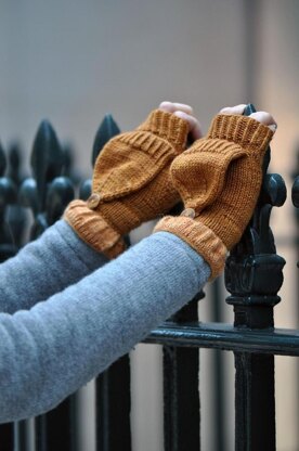 Fred+Ginger Flip-Tops are a fun and quick project which integrate many of the design features of the Fred+Ginger Cardigan. These mittens are worked with a tidy knit-in hem, twisted ribbing, seamlessly picked up flip-tops and an innovative integrated button loop. The ruffed edging can be worked in a coordinating or contrasting colour. Great for those small amounts of leftover lace yarns! Body of Mitten - Sport or DK weight yarn (shown in sweetgeorgia superwash sport), 135 (185, 225) yds. Ruffled Edging - laceweight yarn (shown in sweetgeorgia cashsilk lace), 50 (60, 70) yds.