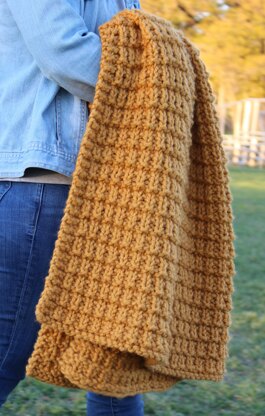 The Game Time blanket (and scarf!) is knit with super bulky weight yarn so it is quick to knit on big needles.