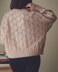 The Gem Sweater is knitted by starting at the back from the top down to the base of the armholes. Then, both fronts are picked up and knitted separately, working from the top down to the edge of the front neck. After joining both pieces, the front is worked to the armhole, and then the front and back are joined and knitted in the round down to the hem. Pick up and knit for the sleeves.
