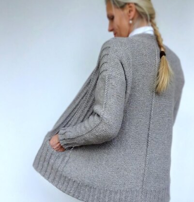 **Knit your own rhythm and get the groove!**Get the groove is a cool and modern outfit with dropped shoulders and useful pockets. This Cardigan is knitted seamlessly from the top down with a simple slip stitch pattern, only a few rows will call for a little bit more attention, the rest is all about relaxation and getting the groove. The pockets are integrated and worked as you go. Length can be adapted to personal preferences.