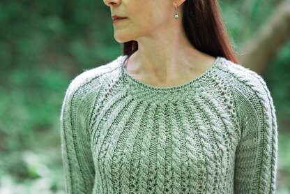 In wanting to expand on the design aspect of braided cables moving into single rope cables that I used in Evelyn, I designed a pullover. I used the braided cables at the neck line and added some eyelet lace to keep the neck band from being too stiff. I then added the eyelet lace in between the single cables in the body to make the body more fluid and lighter. And of course to add a pretty detail. Gia is little cute name that means God’s gracious gift. It was certainly a gift to figure out the design and hopefully will be a gift to your wearable knits! This tunic style pullover that is fun and easy wearing is sure to be one that gets worn a lot!