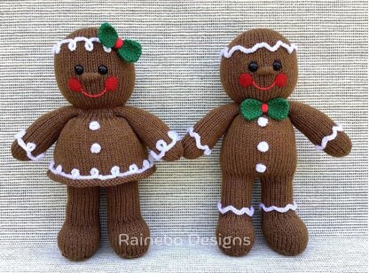These darling Ginger & Spice Dolls are knit in the round, (Intermediate Level), using Magic Loop (or double pointed needles). They are approx. 10” tall and are created using #3-light wt. (DK wt.) yarn and size 3 (3.25mm) 32” Circular Knitting Needles (if using Magic Loop). The legs, body, arms, and head are all knit on as you work along. Approx. yardage: GINGER: Body Color: 150 yds. (Cygnet DK-432 Mocha) White, Green, Red Color Yarns: Small amount SPICE: Body Color: 110 yds. (Cygnet DK-432 Mocha) White, Green, Red Color Yarns: Small amount • 10mm Safety Eyes (or embroidery thread/yarn) • 2.25mm crochet hook (for “icing” decorations) • Red Felt (small amount for cheeks) • White and Red Sewing Thread & Sewing Needle • Large-Eyed Blunt Needle & Long Straight Pins • Removable Stitch Markers, Ring Markers • Polyester Fiberfill Stuffing