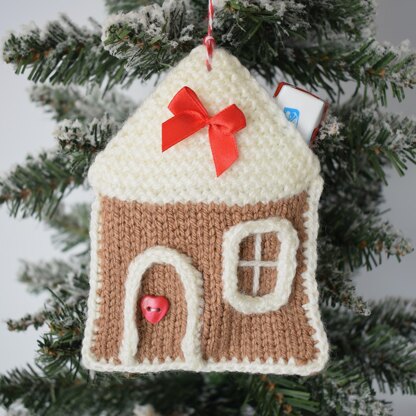 Fill this little Gingerbread House Pocket with Christmas treats and hang from your tree or mantelpiece. Each gift bag is made from two house-shaped pieces, with the roof in garter stitch with a slipped stitch edge, and the body in stockinette stitch. You can decorate as you like to personalise your project; perhaps add name tags, or make a set of numbered houses as an advent calendar. Designed by Amanda Berry @fluffandfuzz, each is knitted in acrylic DK yarns on single pointed needles (not in the round). This house is decorated with a 2 stitch i-cord “icing” around the door and window. The pocket pieces are joined together with a single crochet edging, but you could sew together and perhaps add a decorative blanket stitch edging instead if you don’t crochet. For confident beginners and above, other techniques used include casting on and off, knits, purls, increases and decreases.